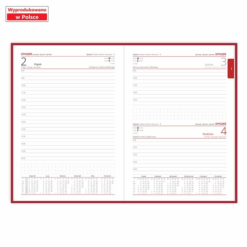 | Układ | dzień na stronie, sobota i niedziela na jednej stronie |