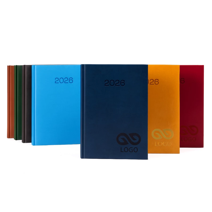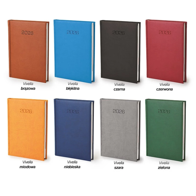 Kalendarz książkowy o formacie B5 z rozkładem dziennym to idealny produkt dla tych, którzy piszą dużo, szczegółowo lub po prostu mają dzień przepełniony zajęciami. Format jest wygodny, dzięki czemu możemy zabrać go ze sobą dosłownie wszędzie. Produkt posiada 368 stron, satynową tasiemkę w kolorze bordowym, druk w eleganckich szaro - bordowych odcieniach, a miękką w dotyku okładkę pokrywać może jeden z dziewięciu różnorodnych barw, które dostosować możesz pod logo Twojej firmy. Kalendarz ten przyda się uczniom i studentom do zapisywania planu dnia, lekcji czy prac domowych. Jeśli bardzo potrzebujesz uporządkować swoje zajętości, produkt ten sprawdzi się idealnie.