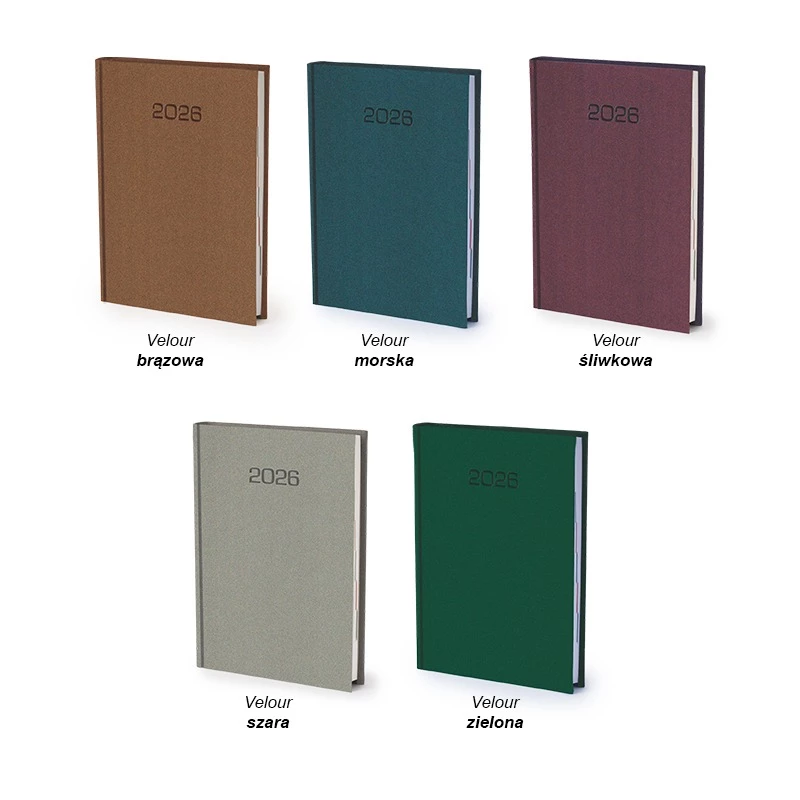 Kalendarz książkowy Velour A5 - Rozkład Dzienny - Szary